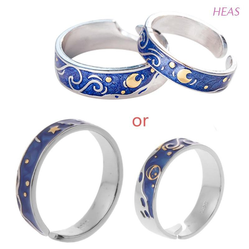 Heas 2 Pzas S925 Plata Chapada En Van Gogh Cielo Estrellado Azul Amante Anillos Abiertos Banda Amor Para Siempre Juego De Anillos Romanticos Joyeria Shopee Chile