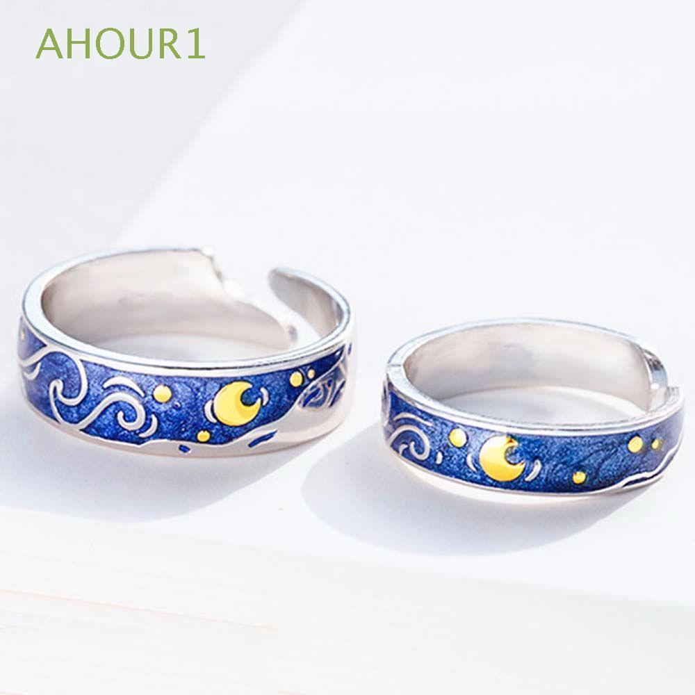Bebe Van Gogh Azul Cielo Estrellado Anillo Abierto Dia Y Noche Estrella Y Luna Siempre Pensando Que Amante Anillos Banda Joyeria Romantica Shopee Chile